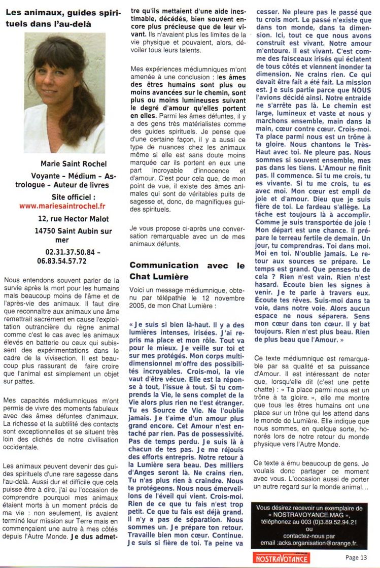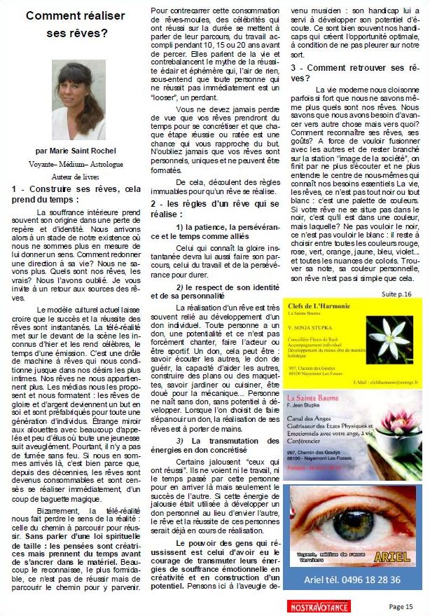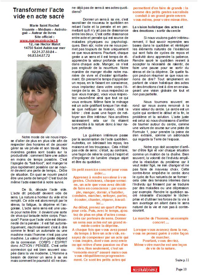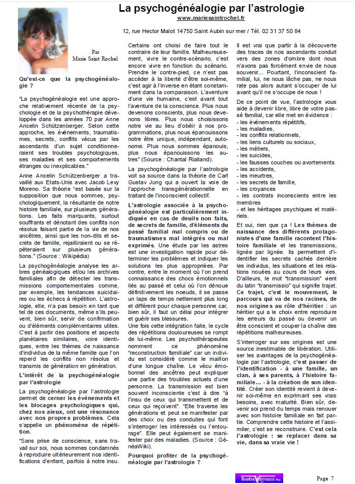 Articles de Marie dans les différents numéros de NostraVoyance (150 000 exemplaires diffusés à chaque publication)